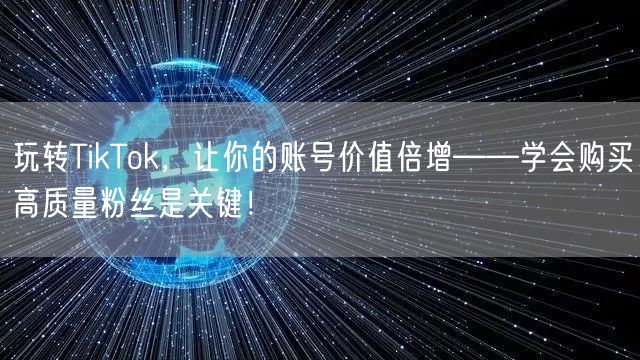 学会购买高质量粉丝,是玩转TikTok、实现账号价值倍增的关键。通过本文的介绍,你将了解如何选择合适的平台购买高质量粉丝,以及如何有效管理和运营TikTok账号。让我们一起探索这个充满机遇的TikTok世界吧!
